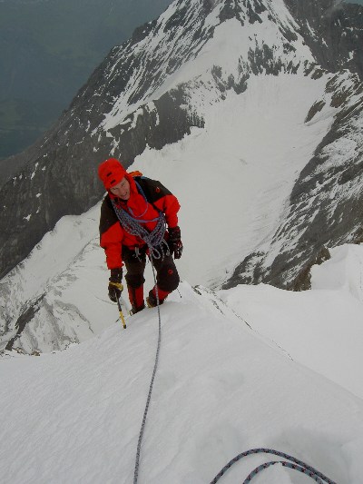 Bei fantastischen Verhältnissen bestiegen wir von der Guggi-Hütte aus über die anspruchsvolle Lauper-Route den Mönch.